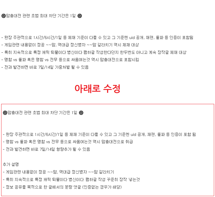 알아보기 쉽도록 패치노트마냥 이미지를 만들어 댓글로 링크를 걸어주었다.